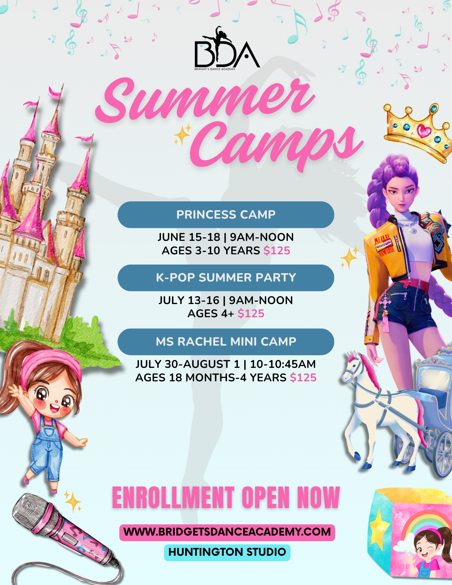 K-Pop Camp (ages 4+): High-energy moves and choreography inspired by your favorite K-Pop stars. 🎶