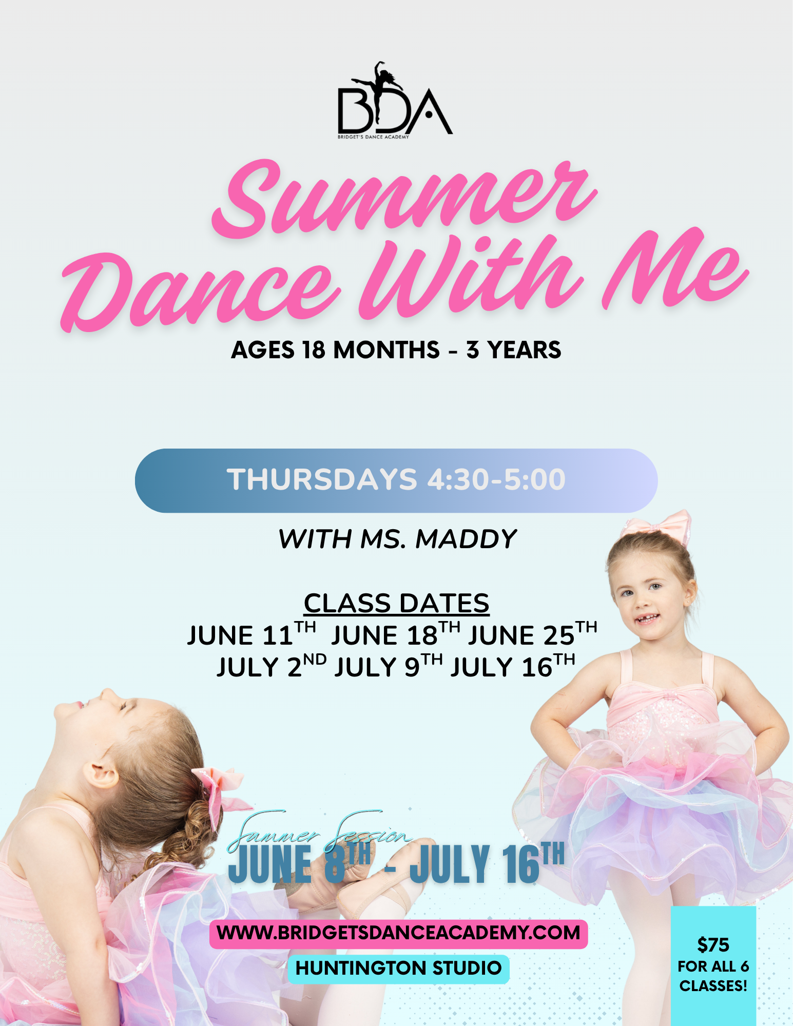SUMMER SESSION RUNS FROM JUNE 8TH - JULY 16TH